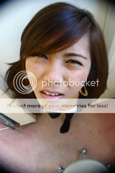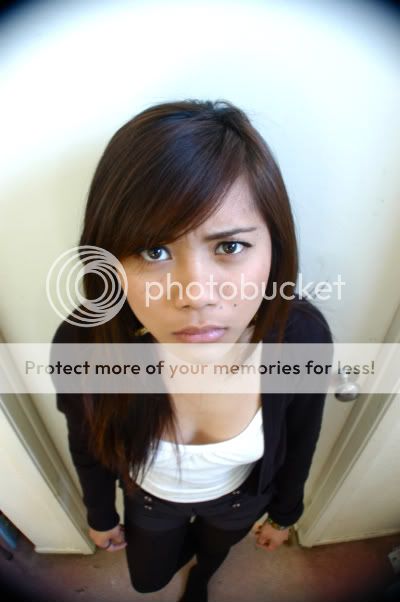 im kinda disappointed on the fact some of the good pictures without my fisheye that i took of my sister got deleted some how... my computer is acting gay right now... well whatever ill take more later... hahaha but yeah these are alright. the ones with the regular lenses were way better but who cares hahaha here you go.. my sister. the model.